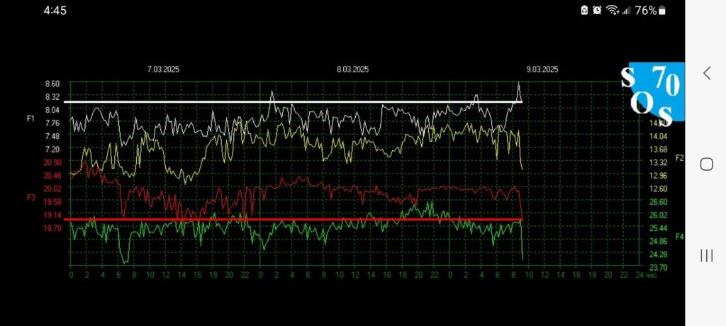 Look at the space between the red line and yellow line. The bottom 2 collapse to their lowest point and the top white line, some of us on the surface pulse up to 8.60 alpha hz as I type.