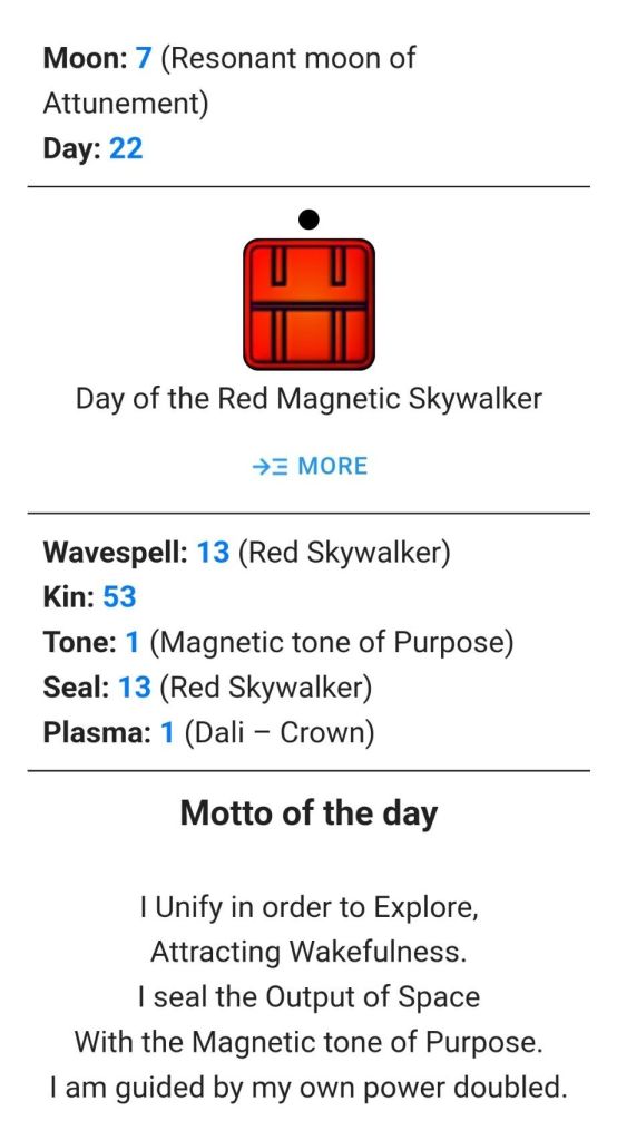 From cafeastrology.com 🌒 🌟 🪐 The oracle is from DreamSpell site. The interp is from me.