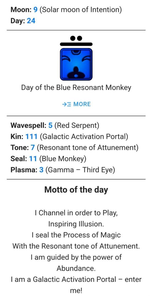 Venus leaves Aries today, thank God, and moves into Taurus. Taurus is ruled by Venus and Venus mediates our gateway with Blue Monkey~Yellow Star. Our awareness is in the upper thighs and hips, and lower abdomen. Work out and stretch those areas. It’s the key to a strong low back.