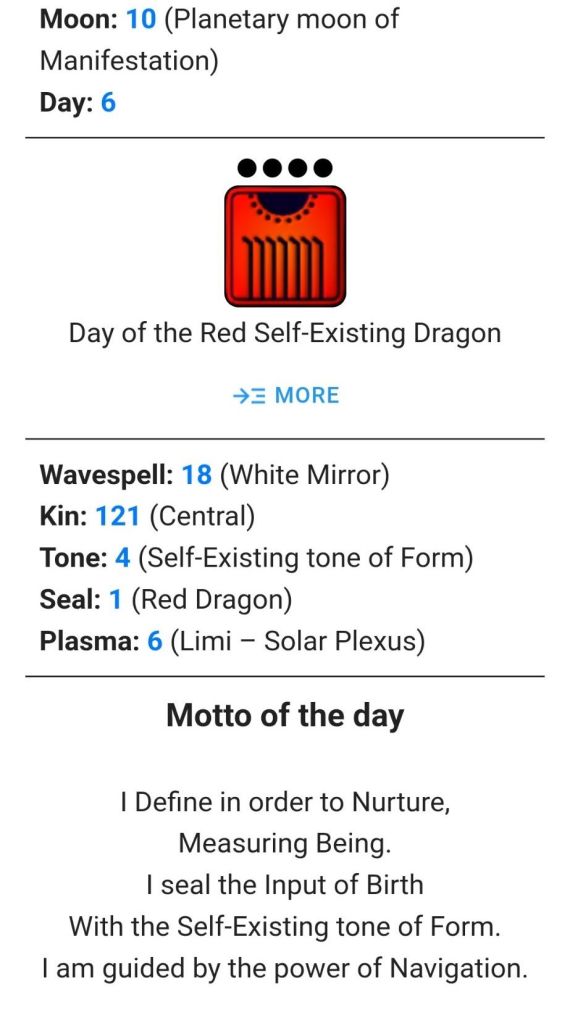 I perfect in order to catalyze. Producing energy I seal the matrix of self-generation with the planetary tone of manifestation. I am guided by the power of accomplishment.