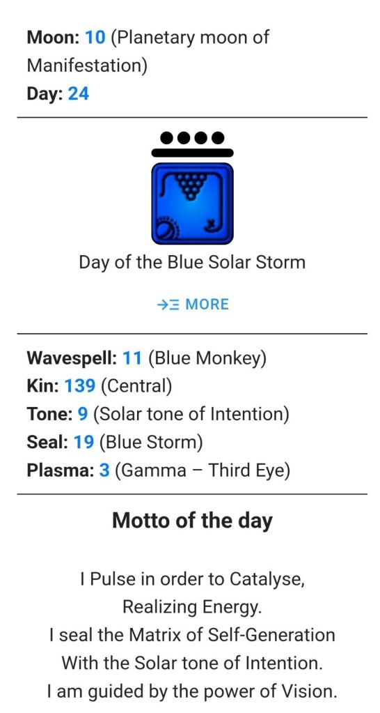 Tone 9 is SOLAR or the Sun. The Sun is in Taurus today.
