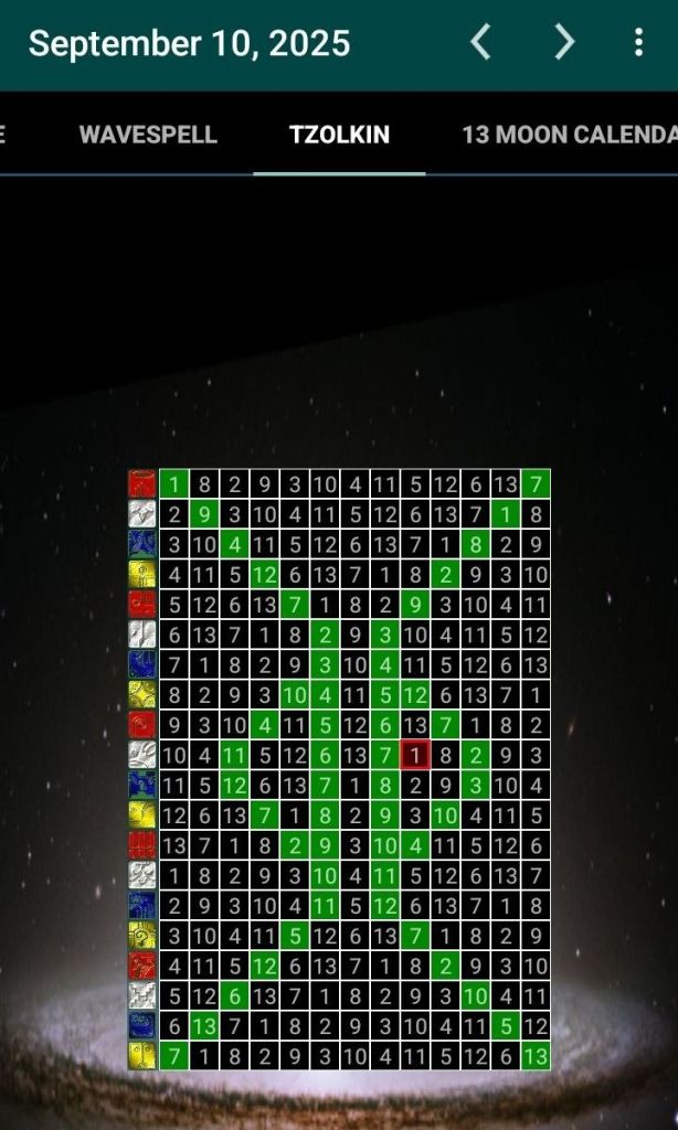 9/10/25 was White 1 Dog, her antipode challenge. I see in her Hidden Wisdom, Red 13 Dragon, the repressed power of the feminine in society. She overstepped that with work, focus, and determination.