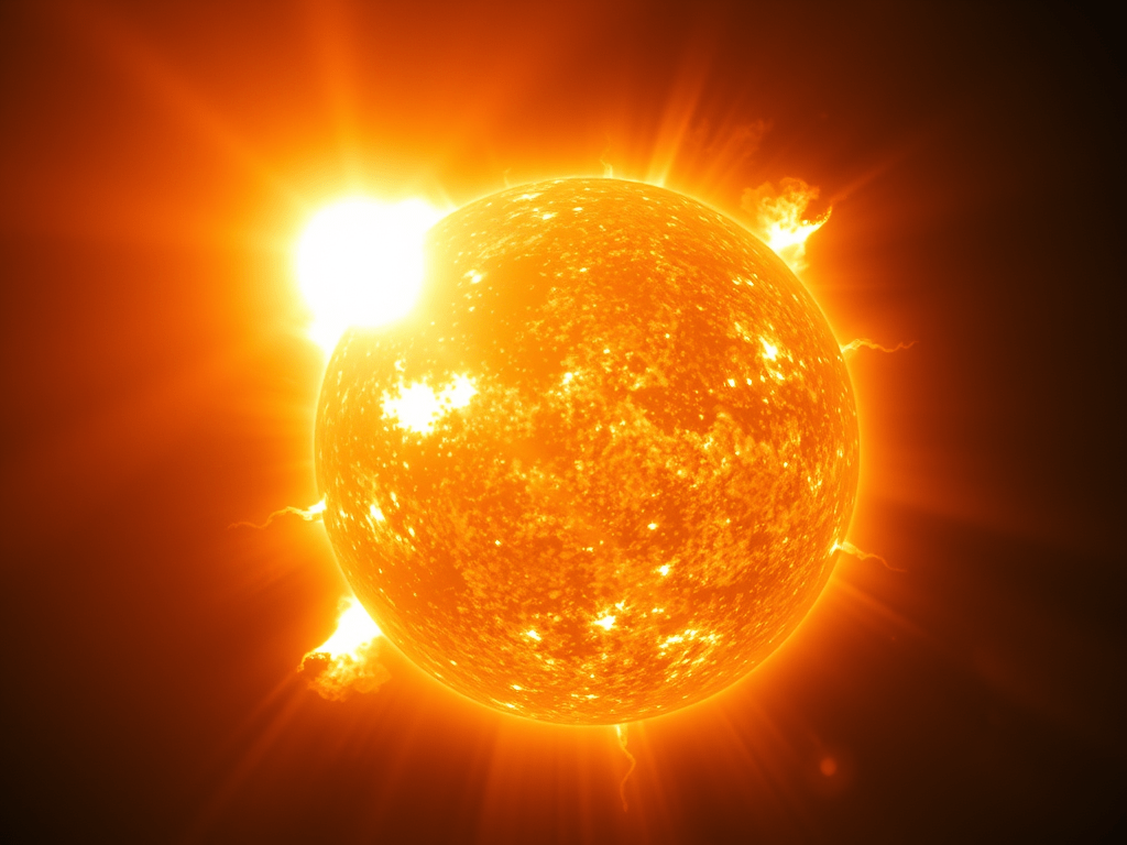 T Coronae Borealis (T CrB) is a binary system 3,000 light-years from Earth. It consists of a white dwarf orbiting an ancient red giant. Hydrogen from the red giant is being pulled down onto the surface of the white dwarf, accumulating toward a critical mass. Eventually, it will trigger a thermonuclear explosion.