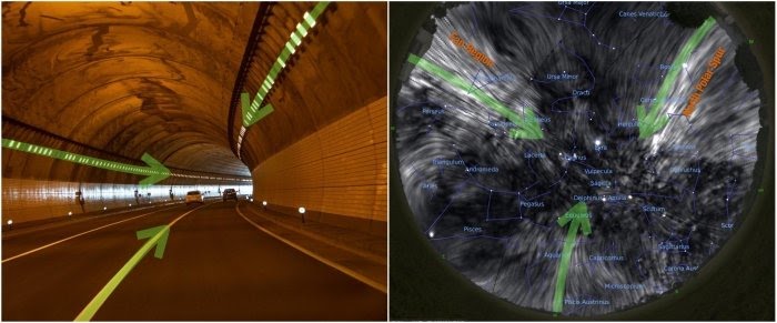 Left: what the tunnel would look like; right: what the sky does look like. (Image Credit Below)