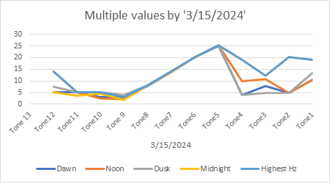 - Very low amplitudes, only 1 beta reading at dusk in A1, Tone 12