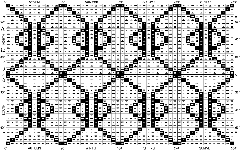 We must remember that one of the AMA’s most important cosmological quests was worldcentering, therefore they would value counting the year cycle from center point to center point, rather than from extreme point (summer solstice) to extreme point (winter solstice) so to speak. Following this line of reasoning, I looked to the night sky to see if it could shed some light on this subject.