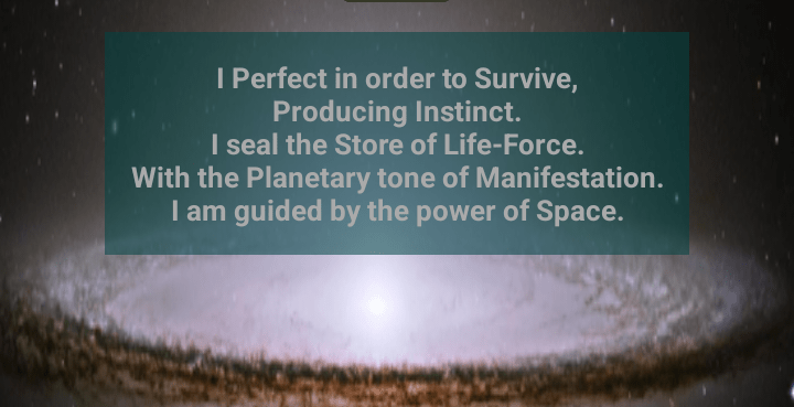 I endure in order to communicate. Transcending breath I seal the input of spirit with the cosmic tone of presence. I am guided by the power of death.