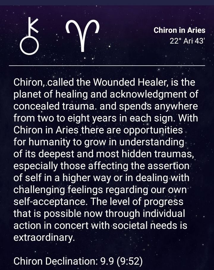 The pulse to the body in time for Chiron is to both shoulders and the whole neck. Everything in between those joints, all the tissue is asking to be aligned and healed by Chiron. This is doubly true since Aries rules the head, and Chiron is in Aries right now.