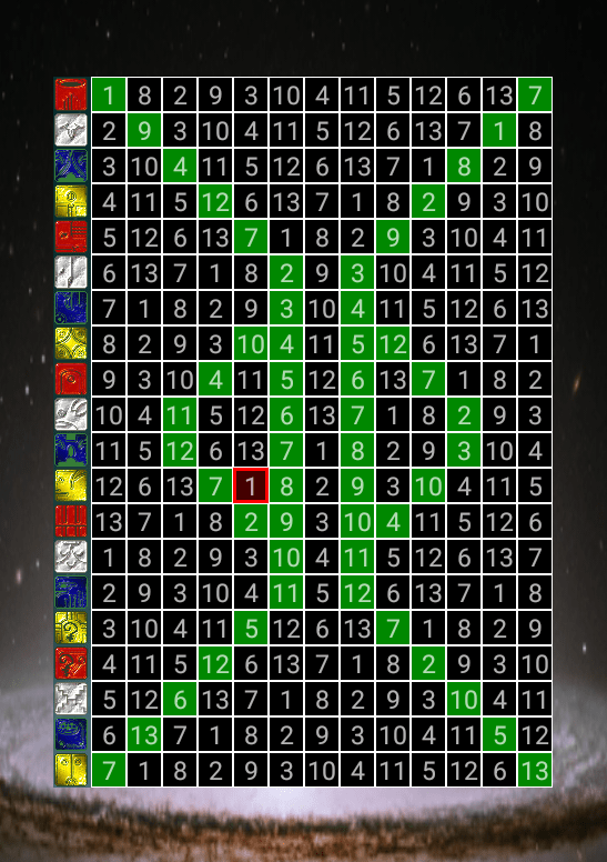 You can see all the repeating pulses on specific amino acid molecules here, which is our evolution. But the tone of creation pulse is always 8~6, Galactic and Rhythmic. Any kin born 8 or 6 will have those attributes that apply to them every day of their life and then double on Tone 8 days.