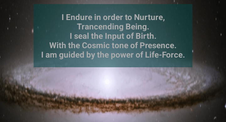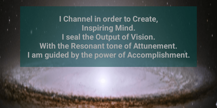 I dedicate n order to dream. Universalizing intuition I seal the input of abundance with the crystal tone of cooperation. I am guided by the power of vision.