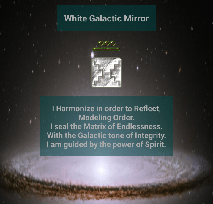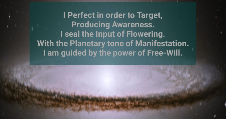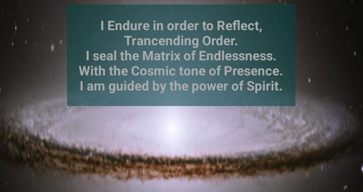 I define in order to enlighten Measuring life I seal the matrix of universal fire with the self-existing tone of form. I am guided by the power of intelligence. I am a polar kin. I convert the yellow galactic spectrum.