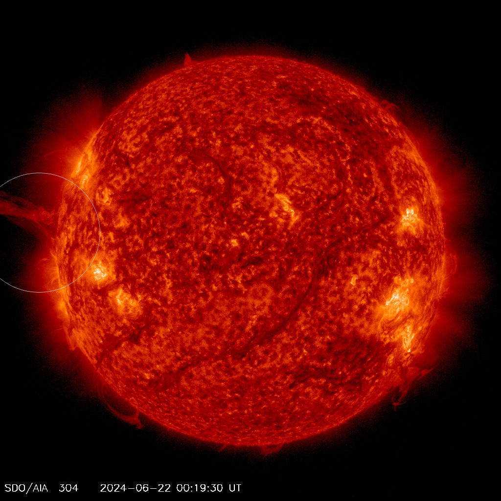 SOMETHING FLARE-Y THIS WAY COMES: There’s a sunspot group just behind the sun’s eastern limb so large that it affects the way the whole sun vibrates. Helioseismic echoes suggest it will rotate into view early this week. Already, NASA’s Solar Dynamics Observatory is observing debris flying over the eastern limb, a possible sign of explosive activity in the approaching sunspot group. Aurora alerts: SMS Text