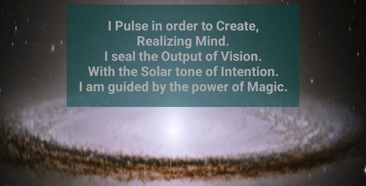 I pulse in order to explore. Realizing wakefulness I seal the output of space with the solar tone of intention. I am guided by the power of universal water. I am a galactic activation portal. FOCUS.