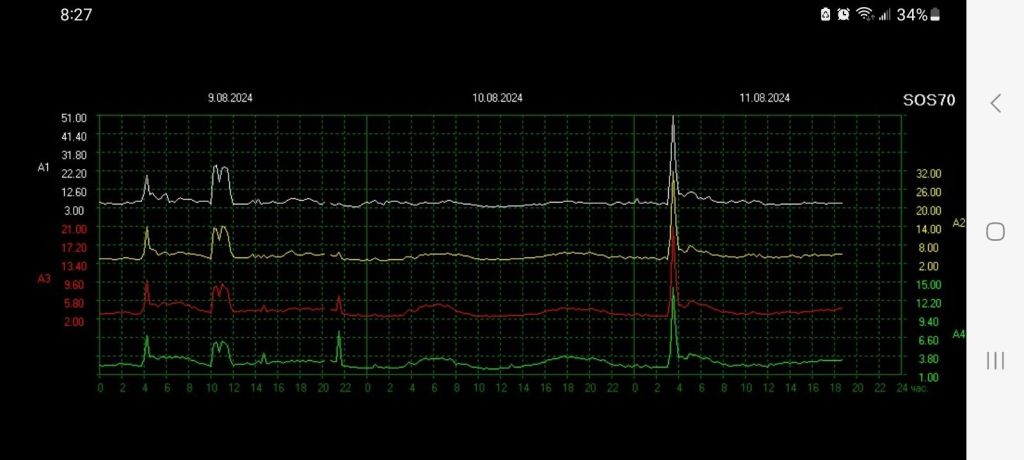 The highest reading was on Tone2/Q3 at 35 hz at dusk. It was even odd for the day where 8 out of twelve readings where the highest at midnight. This layer was very high at dusk.
