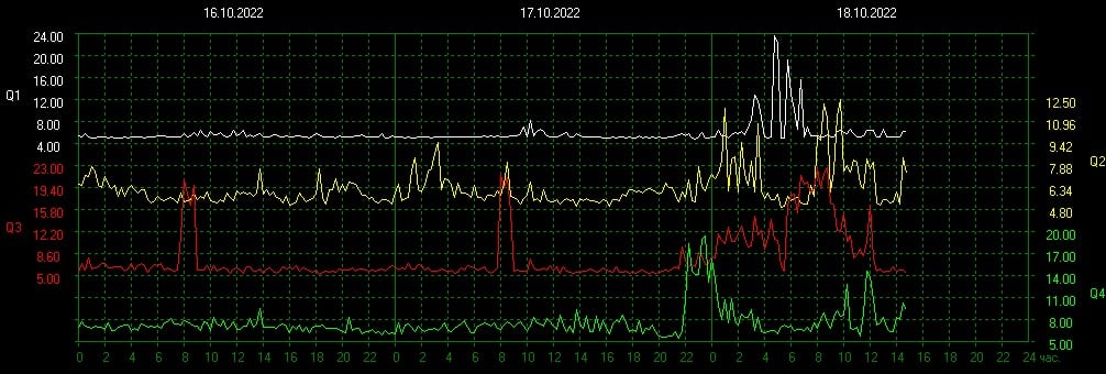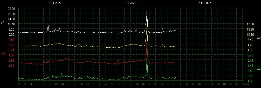 At 1 pm the frequency is 8.80, very high and amplitude is going up.
