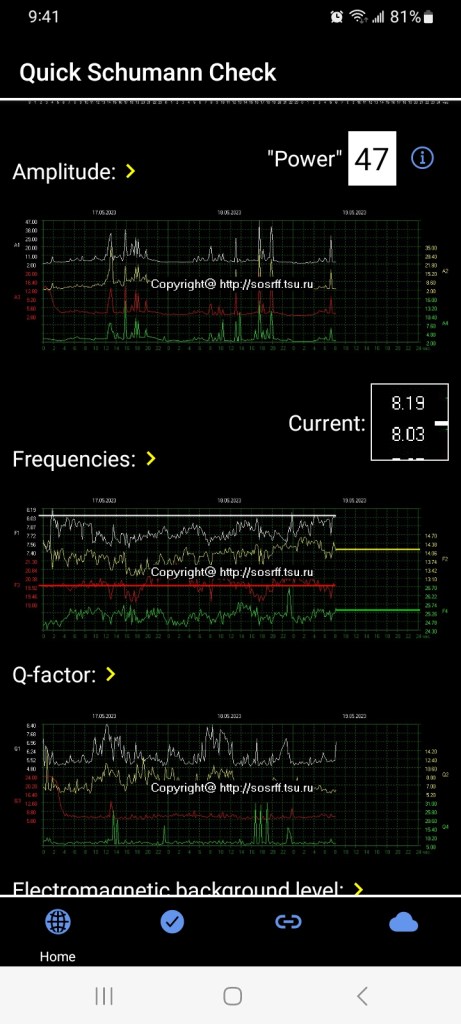 Please note that the frequency hovers always between 7.25 and 8.25. If the base frequency changed it would likely kill all DNA species on earth. All they can do right now to help our brains ascend is turn up the amplitude of the sound. That is very likely the very low hum we hear in our inner ear. The frequency fluctuation helps our cells change too.