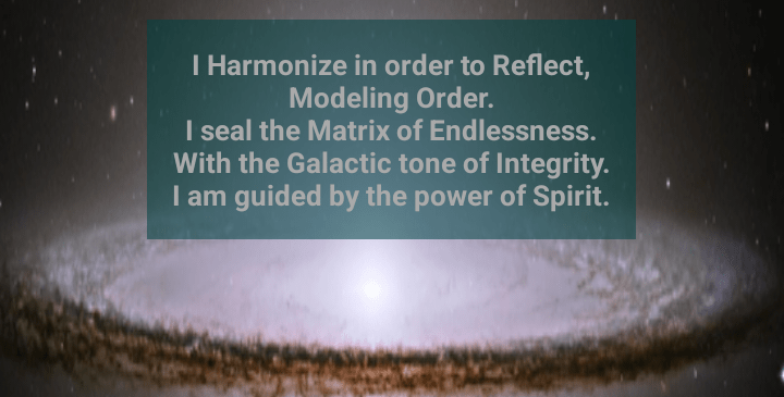 I perfect in order to equalize. Producing opportunity I seal the store of death with the planetary tone of manifestation. I am guided by the power of timelessness.