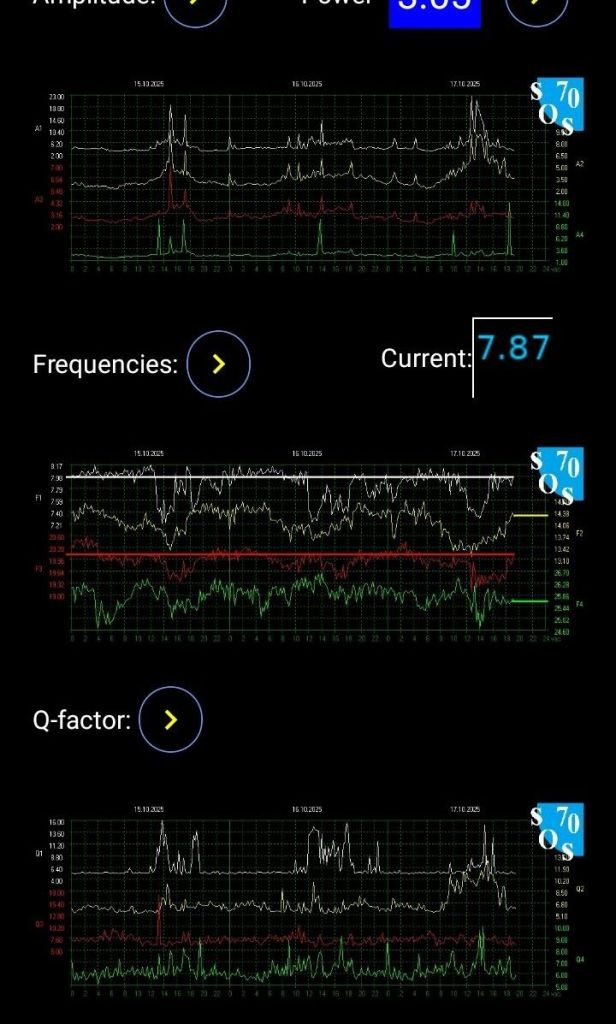 We are beta, alpha, and alpha in all 3 layers. The tone is 12, and the pulsar is 4-8-12. Amplitudes are at 23 beta hz.