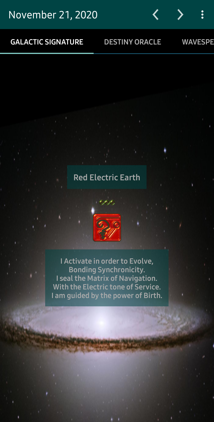 I activate in order to Evolve. Bonding Synchronicity I seal the Matrix of Navigation with the Electric Tone of Service. I am guided by the power of Birth.