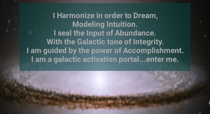 I dissolve in order to evolve. Releasing synchronicity I seal the matrix of navigation with the spectral tone of liberation. I am guided by my own power doubled.