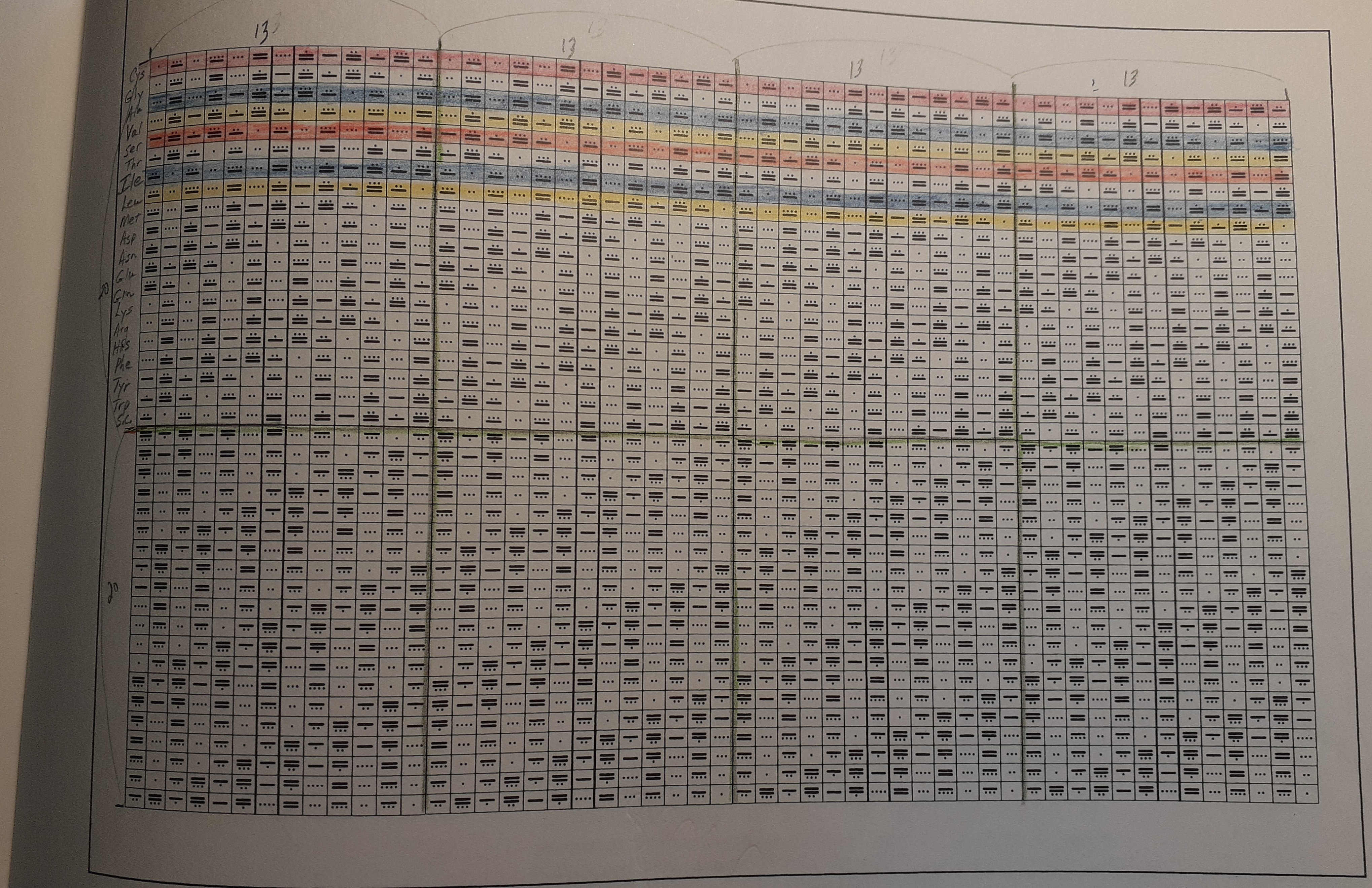 Amino Acids are Tyrosine, Cysteine, Glycine, Leucine, and Alanine. The Theme and the HW create the polarity in the Tzolkin. The double helix bonding point is Tyrosine-Alanine and adds up to 14.∞