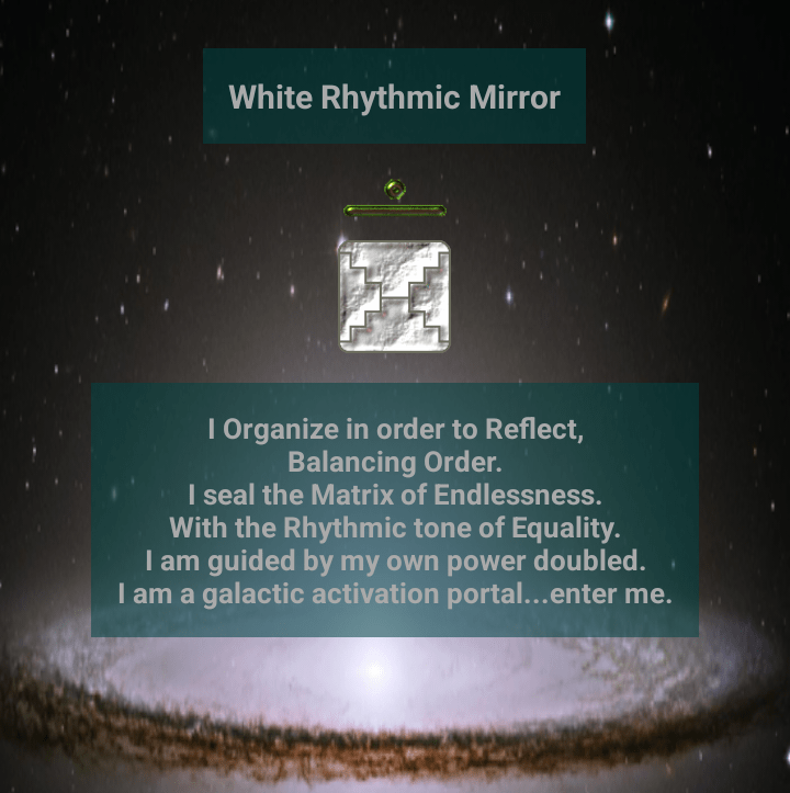 That’s just a nutshell of the context of our galaxy. In the order of things, The Tzolkin, The Network Grid, galactic energy is about modeling integrity and harmonizing. White Mirror reflects Order and Endlessness which is why I brought the Urantia Book into the mix today. I’ve read the whole thing over a thirty year period and pick it up often and read it again.