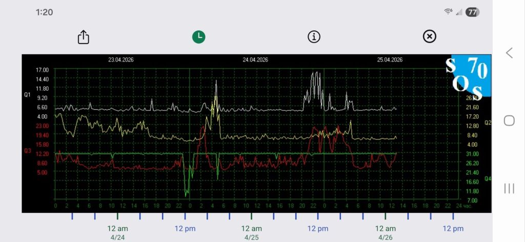 Green on the bottom, Tone 1 continues to be at 31 gamma hertz deep earth. That is earthquakes.