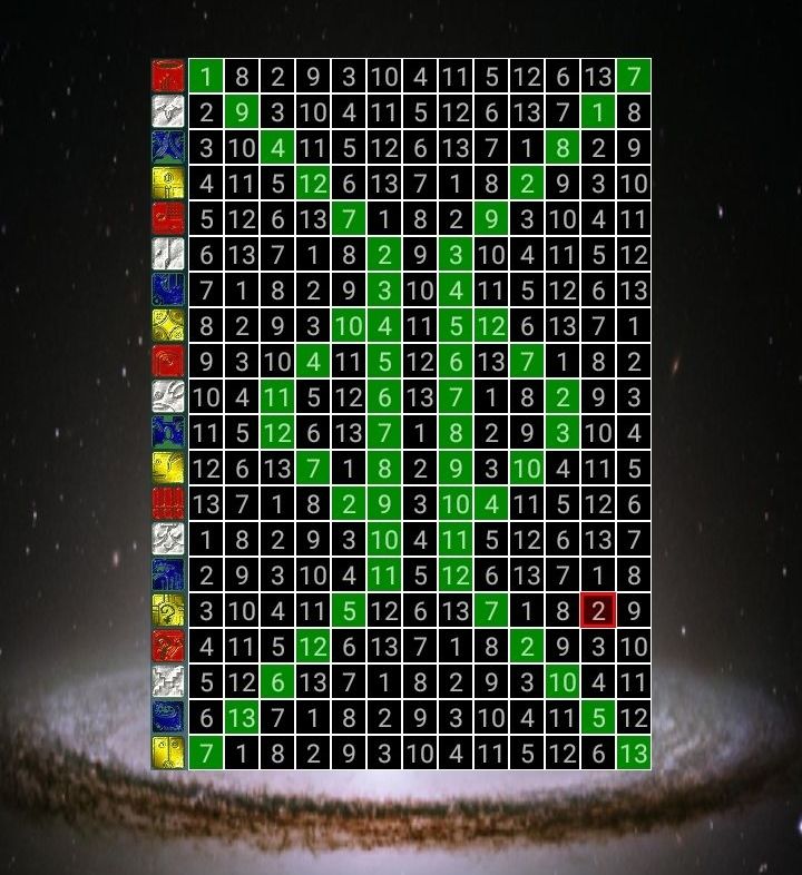 The red square on the Harmonic is today, Yellow 2 Warrior (+) is in the S. Polar Zone, but if you go up to the left to our gforce, Yellow 12 Seed (-) in 5th dimension, we are on a GAP kin in the N. Polar Zone. There is a balancing going on between protons and electrons in the inflow and outflow of frequency.